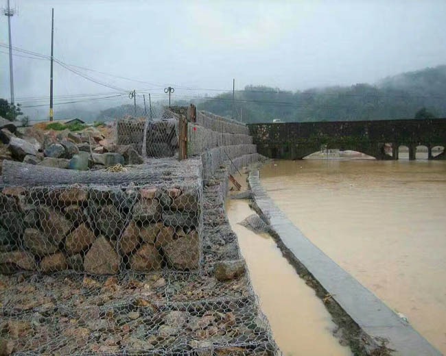 格宾网石笼防护工程技术是指由专用机械将涂塑或不涂塑(PVC树脂)的热镀锌铝低碳钢丝编织成格宾网片,然后将其裁剪、拼装成符合设计要求的格宾网箱笼,用块石等填满后用于堤防、河岸、路基的防护。格宾网石笼防护属于柔性防护工程,有利于保护河道、堤防岸坡的安全稳定,可实现水土自然交换,增强水体自净能力,同时又可以实现墙(坡)面植被绿化,使工程建筑与生态环境保护达到有机结合。