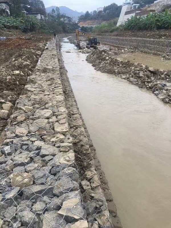 石笼网 是金属线材编织的角形网(六角网)制成的网箱,使用的金属线径是根据六角形的大小而不同。格宾网石笼护坡具有工法操作简便、工序少、施工效率且效果易于保证。石笼网结构具有柔韧性强、透水性能好、经久耐用、利于植被生长、造价低等特性,所以近年来逐渐在我国河道治理、海堤边坡防护等工程中广泛应用。
