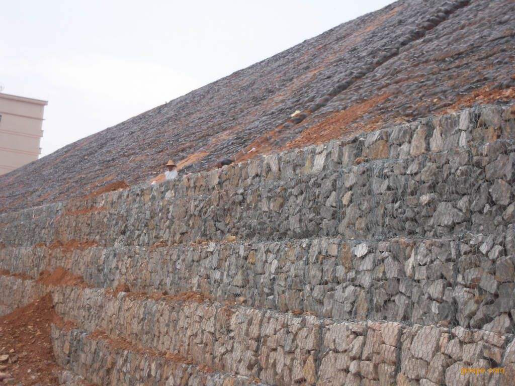 格宾网又名石笼网,格宾笼、格宾石笼,是由优质低碳钢丝经机器拧编成六角形网孔的网片,再由工人裁剪、组装成为各个尺寸的网箱。格宾网一般被称作生态绿格网,格宾网可根据工程设计要求组装成箱笼,并装入块石等填充料后连接成一体,用做海岸堤防、路基防护,山体滑坡,公路、铁路路基边坡防护,生态边坡治理,灾害防护治理,大型边坡支挡工程,生态河道建设,市政园林。
