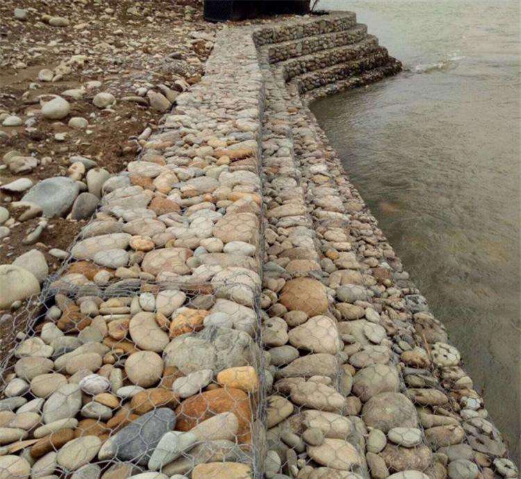 安装要求:将折叠好的格宾护垫置于平实的地面展开,压平多余的折痕,将前后面板、底板、隔板立起到一定位置,呈箱体形状。相邻网箱的上下四角以双股组合丝连接,上下框线或折线绑扎并使用螺旋固定丝绞合收紧连结。边缘突出部分需折叠压平。将每个网箱六个面及隔断组装完整,确保各个网面平整,然后放在正确的位置上。