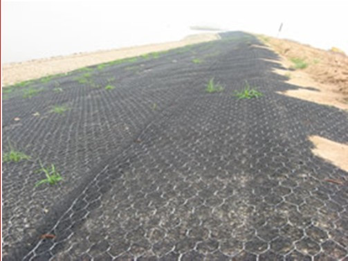 加筋麦克垫一种适用于永久性植被再生的抗冲刷网状结构,由六边形双绞合金属网及三维材料复合构成,兼具土工材料及格网的优点。土工材料为聚丙烯材质,格网钢丝通常选用防腐性能好的镀10%铝锌合金钢丝。